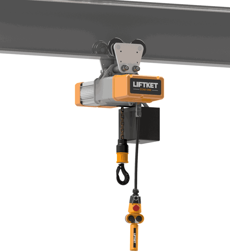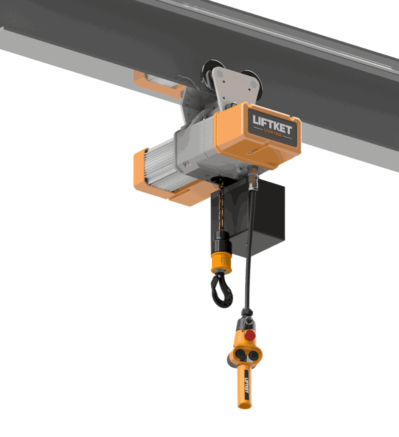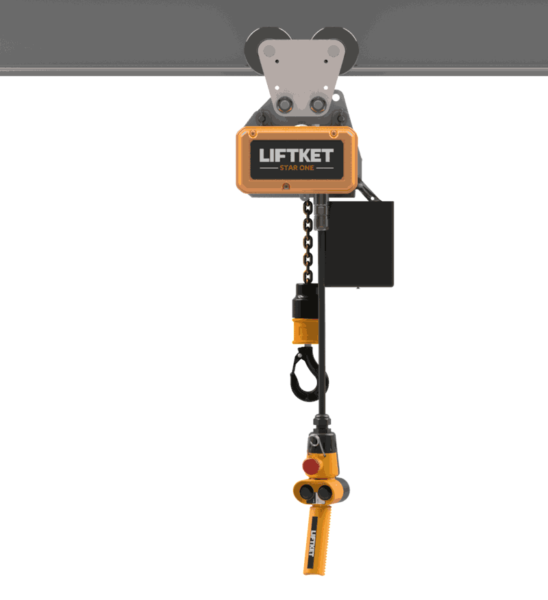Star One fra Liftket er en allsidig og kompakt elektrisk talje som kan operere på en faset 230 volt både 50 og 60 Hz. På grunn av den spesialdesignede frekvensomformeren, har den lastavhengig, trinnløs hastighetsregulering og kan løfte laster på opptil 1000 kg på en sikker og presis måte. Liftket Star One er laget med et robust komposittmateriale, noe som gjør den lettere enn mange andre elektriske taljer som har metallhus. Den elektriske taljen er utstyrt med et høykvalitets bremse-kløtsjsystem som sikrer hold av lasten i enhver posisjon. Star One har spesielt lavt vedlikehold og tilbyr høy driftssikkerhet og pålitelighet.